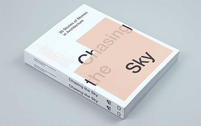 Oscar Riera Ojeda Publishers diseñó esta tapa minimalista para el libro Chasing the Sky, una obra en la que se honran las carreras de diferentes arquitectas influyentes. La tipografía del título se alinea en torno a una forma geométrica.
