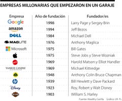 Estos son algunos ejemplos de negocios multimillonarios que comenzaron desde el "garaje" de su casa y ahora facturan miles de millones de dólares. Es importante señalar que en algunos de los casos, el término de garaje no se reduce únicamente a su significado tangible y real, sino que puede también ser una analogía para mostrar que comenzaron desde cero.