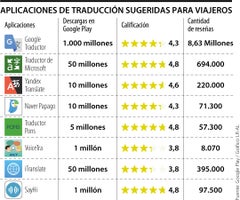 Entre las aplicaciones restantes, Traductor Pons es la aplicación con más descargas, con cinco millones, seguida de VoiceTra y SayHi, que consiguieron la misma cantidad de un millón.